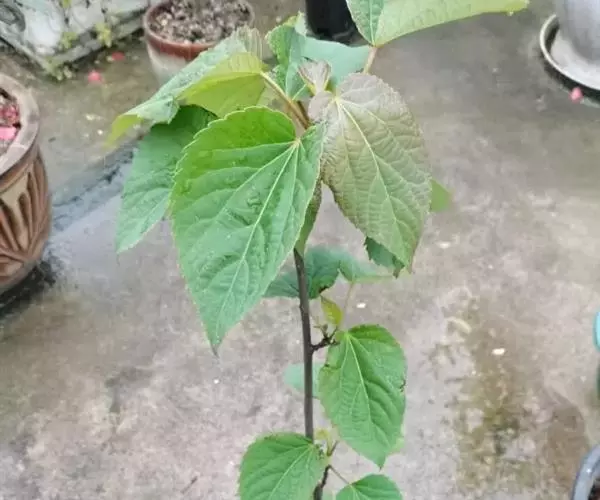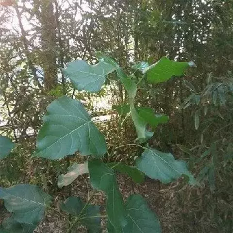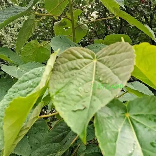 落叶乔木,高8-21米;树皮淡灰色,不裂;小枝圆柱形,细而脆,黄棕色,有明显的皮孔,冬日呈侧枝长于顶枝状态,枝条平展,近轮生,树冠长圆形,当年生枝条紫绿色,有淡黄色的长毛;冬芽有淡褐色毛,有4-6片锥状鳞片。叶薄革质或厚纸质,卵形或心状卵形,或为宽心形,长13-16厘米,稀达20厘米,宽12-15厘米,先端渐尖或尾状,基部通常心形,边缘有粗的齿,齿尖有腺体,上面深绿色,光滑无毛,下面有白粉,沿脉有疏柔毛,脉腋有丛毛,基部脉腋更多,通常5基出脉,第二对脉斜升到叶片的3/5处;叶柄长6-12厘米,或更长,圆柱状,无毛,下部有2-4个紫色、扁平腺体,基部稍膨大。