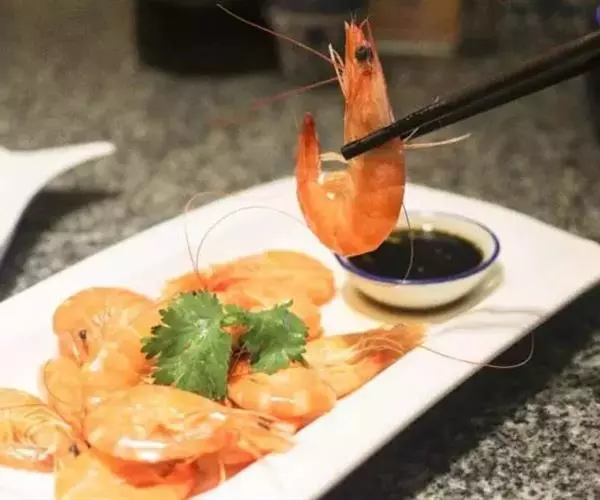 广州人喜欢用白灼之法来做虾,为的是保持其鲜、甜、嫩的原味,然后将虾剥壳蘸酱汁而食。