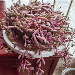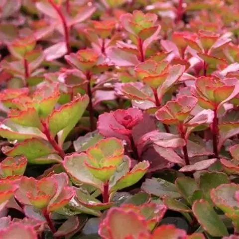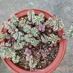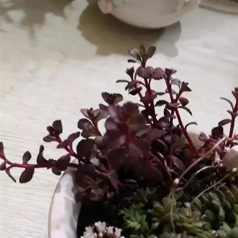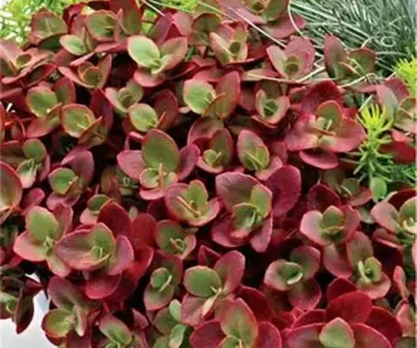 小球玫瑰(Phedimus spurius 'Schorbusser Blut')是景天科费菜属的多肉植物,也叫龙血景天。小球玫瑰有着精致纤巧的外形,耐寒和耐旱性非常好,并具有很强的繁殖能力,适宜作为护盆草或草坪草。在温差大、阳光充足的环境下,叶色会更加鲜艳,红彤彤的非常讨人喜爱。