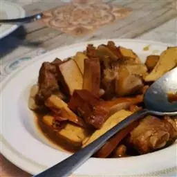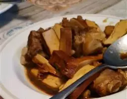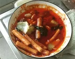 6. 放绿豆糕,加白砂糖翻炒,干湿看个人喜好。
