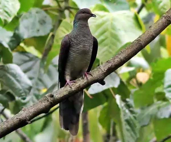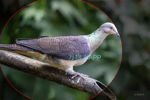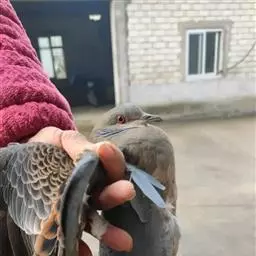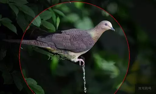 雌鸟和雄鸟相似,但上体少光泽,头顶与胸具黑褐色细横斑。尾羽较鸽类为长。