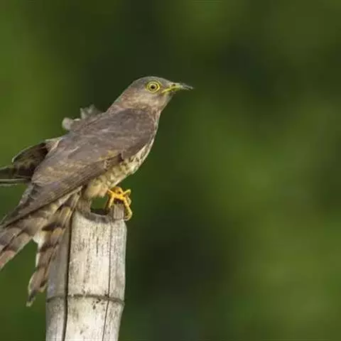 大杜鹃:是普通杜鹃的中国亚种。体长约320毫米,翅长约210毫米。雄鸟上体纯暗灰色;两翅暗褐,翅缘…