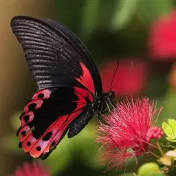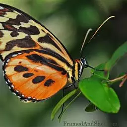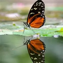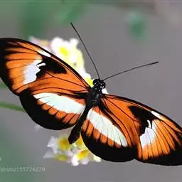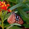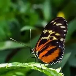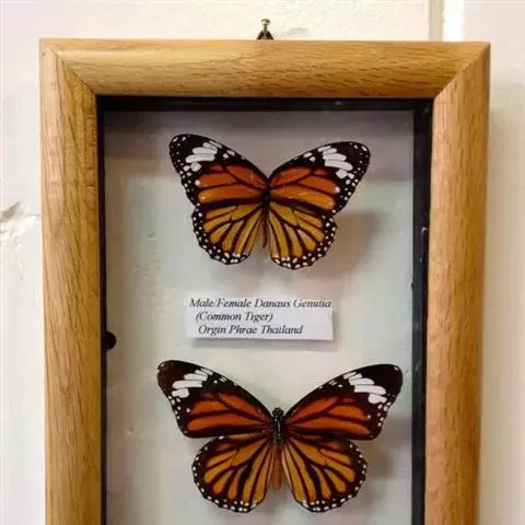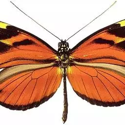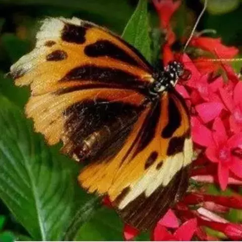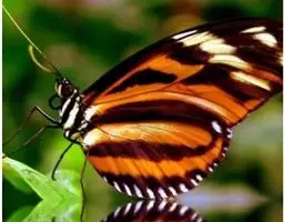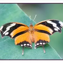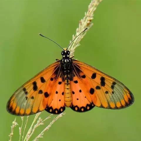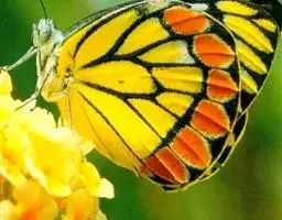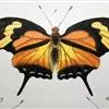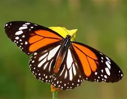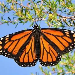 黑脉金斑蝶:翅阔8.6-12.4厘米。雄蝶较雌蝶为大。成年蝶颜色鲜艳,翅膀上有显眼的橙色及黑色斑纹…