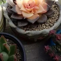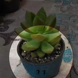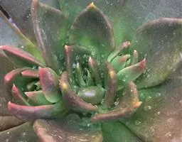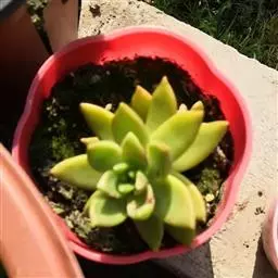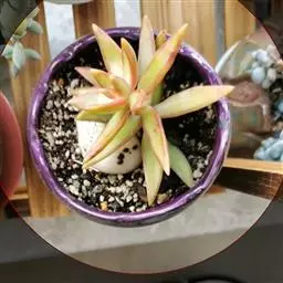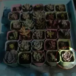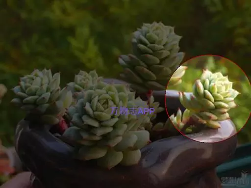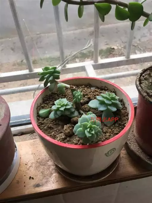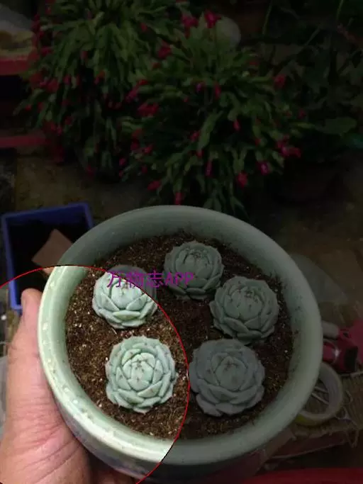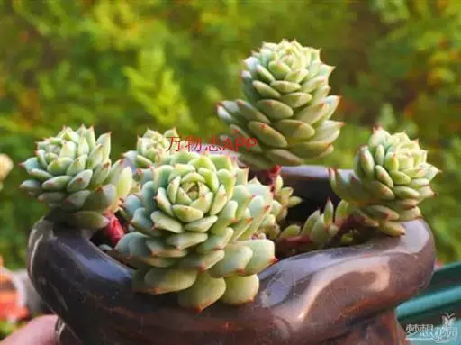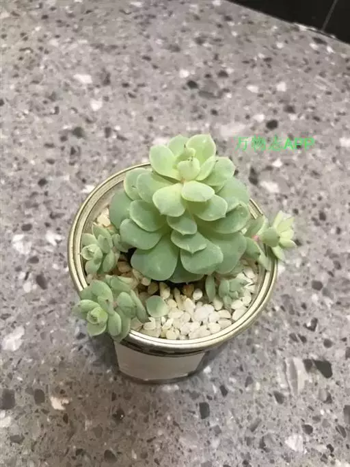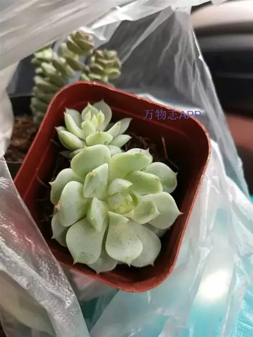 静夜小型品种,单个直径在6~8cm(也有大型静夜,可以长到12cm的直径),叶片浅绿色,叶尖上带一点红润。