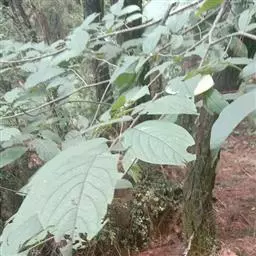 大型落叶藤本;着花小枝细长,一般20厘米以上,直径约2.5毫米,基本无毛, 葛枣猕猴桃 最多幼枝顶部略被微柔毛,皮孔不很显著;髓白色,实心。叶膜质(花期)至薄纸质,卵形或椭圆卵形,长7~14厘米,宽4.5~8厘米,顶端急渐尖至渐尖,基部圆形或阔楔形,边缘有细锯齿,腹面绿色,无毛或有时下面沿叶脉有疏柔毛,有时前端部变为白色或淡黄色,背面浅绿色,沿中脉和侧脉多少有一些卷曲的微柔毛,有时中脉上着生少数小刺毛,叶脉比较发达,在背面呈圆线形,侧脉约7对,其上段常分叉,横脉颇显著,网状小脉不明显;叶柄近无毛,长1.5~3.5厘米。