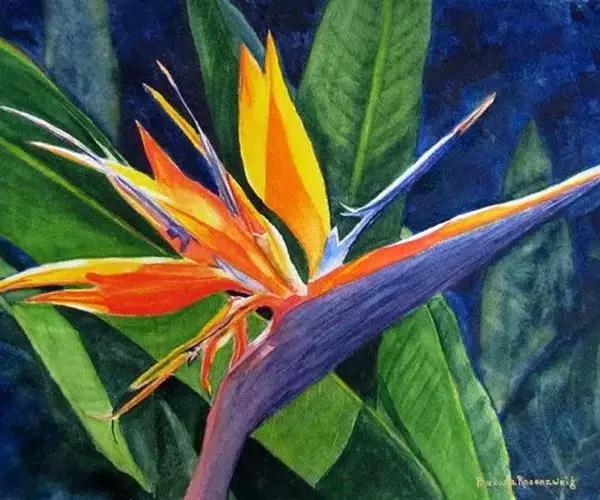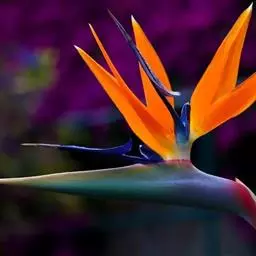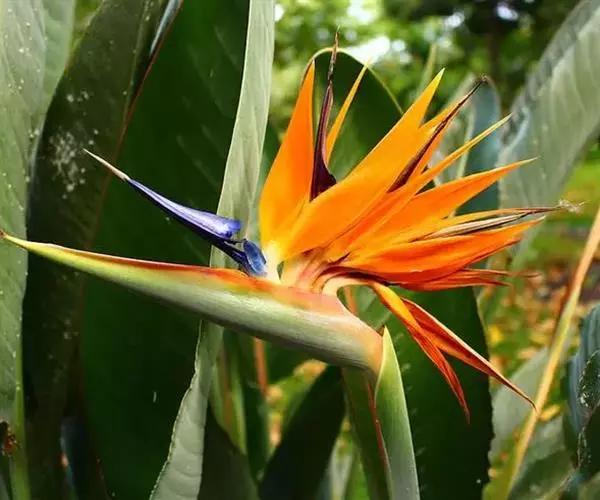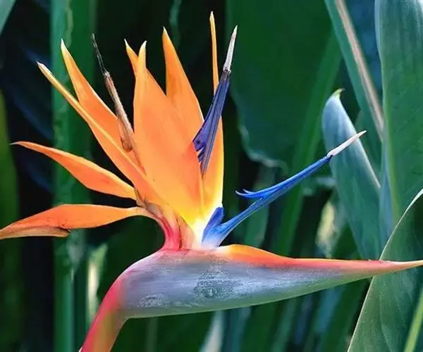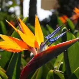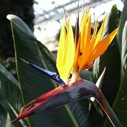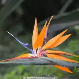 鹤望兰,别名天堂鸟,为鹤望兰科鹤望兰属的一种多年生草本植物;无木质树干;花序生于与叶柄近等长或稍短的花序梗上,佛焰苞1;花较小,萼片橙黄色,长7.5-10厘米,箭头状花瓣基部具耳状裂片,暗蓝色;花期在冬季。该物种原产非洲南部,在中国南方大城市的公园、花圃有栽培,北方则为温室栽培。性喜温暖湿润、阳光充足的气候,适宜生长的温度为25℃左右,耐干旱、较耐寒、不耐水湿,要求疏松肥沃、排水良好,以土层深厚的沙壤土为宜。因花形美丽似鹤,花开时犹如仙鹤翘首远望,花朵寿命亦长,故中文名为鹤望兰。鹤望兰素有“鲜切花之王”的美誉,是一种名贵的观赏花卉,深受广大消费者喜爱。同时,鹤望兰也宜大盆栽植,布置在公园、客厅、会议室、展厅候机室等处。鹤望兰是美国洛杉矶市的官方花卉象征。