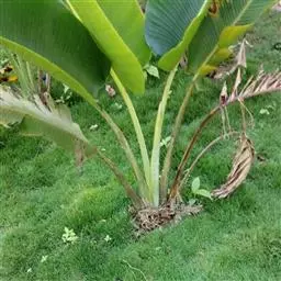 多年生草本,无茎。叶片长圆状披针形,长25-45厘米,宽约10厘米,顶端急尖,基部圆形或楔形,下部边缘波状;叶柄细长。