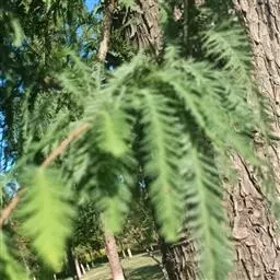 落羽杉 Rich.),杉科落羽杉属木本植物。树干尖削度大,基部通常膨大,具膝状呼吸根,树皮棕色,…