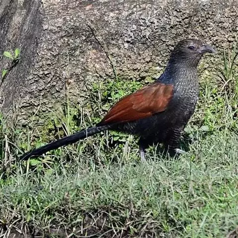 褐翅鸦鹃,是鹃形目鸦鹃科鸦鹃属的鸟类。褐翅鸦鹃的身体为黑色;头颈和胸带蓝紫色金属光泽并具黑亮的羽干纹,…