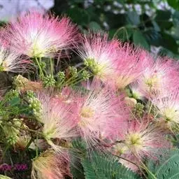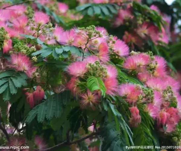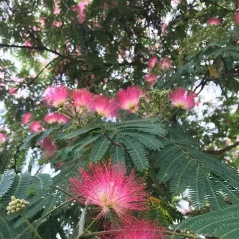 合欢花树形姿势优美,叶形雅致,树冠开阔,入夏绿荫清幽,羽状复叶昼开夜合,十分清奇,夏日粉红色绒花吐艳,十分美丽,有色有香,能形成轻柔舒畅的气氛,宜作庭荫树、行道树,种植于林缘、房前、草坪、山坡等地。是行道树、庭荫树、四旁绿化和庭园点缀的观赏佳树此外,合欢对氯化氢,二氧化抗性强,对二氧化硫有一定抗性,适于厂矿、街道绿化。