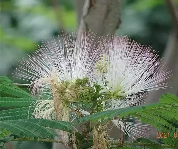 合欢花花丝粉红色,荚果偏,是城市行道树、观赏树。心材黄灰褐色,边材黄白色,耐久,多用于制家具;嫩叶可食,老叶可以洗衣服;树皮供药用,有驱虫之效。它还有宁神作用,主要是治郁结胸闷、失眠健忘、滋阴补阳、眼疾、神经衰弱等功效。