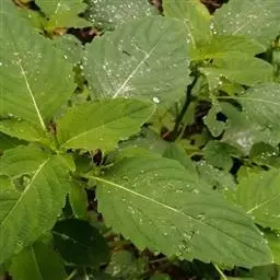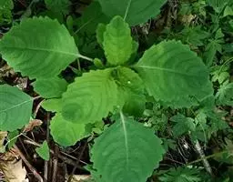 叶互生,具柄。叶片近膜质,长圆形或卵状长圆形,长10-15 (20) 厘米,宽3-6厘米,顶端渐尖或尾状渐尖,边缘具圆齿状齿,齿端具小尖,齿间无刚毛,侧脉6-7对,弧状弯,在下面明显,上面暗绿色,下面浅绿色,叶柄长5-10毫米,无腺体。