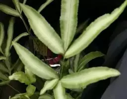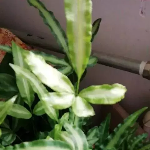 白羽凤尾蕨(学名:Pteris ensiformis Burm. var.victoriae Bak.)是凤尾蕨科,凤尾蕨属蕨类植物,植株高可达50厘米。根状茎细长,斜升或横卧,叶密生,二型;与叶轴同为禾秆色,稍光泽,光滑;叶片长圆状卵形,对生,稍斜向上,上部的无柄,下部的有短柄;羽片中央沿主脉两侧各有1条纵行的灰白色带。小羽片对生,密接,无柄,斜展,长圆状倒卵形至阔披针形,顶生羽片基部不下延,叶干后草质,灰绿色至褐绿色,无毛。