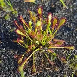 石英地茅膏菜 茅膏菜对湿度的要求不高,需要控制在40%-90%,冬季干燥时一般室内的湿度都能满足要求。夏季炎热的时候,其湿度不能连续几天高于90%,否则可能造成茎叶腐烂,若出现此种境况时应立即加强通风。在凉爽的季节高至95%一般也不会出问题。