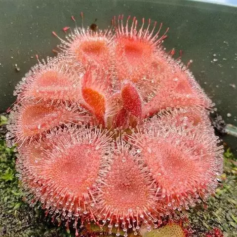 迷你茅膏菜是一类非常好种植的食虫植物,对温度要求不高,存活温度多在0-37度之间,最佳温度5-30度之间,在深秋15度以后,在植株中心的生长点会开始长出许多“冬芽”,这些冬芽会在一个月以后成熟,会像种子一样发芽成长为新的植株。