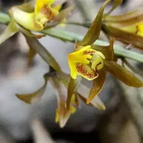 带唇兰:假鳞茎暗紫色,圆柱形,罕为卵状圆锥形,被膜质鞘,顶生1枚叶。叶狭长圆形或椭圆状披针形。…