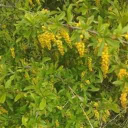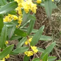 大叶小檗是小檗科小檗属植物,常绿灌木,高可达2米。老枝具棱槽,叶革质,椭圆状倒披针形,基部楔形,上…