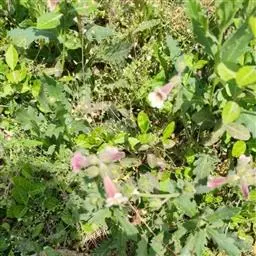 基生叶多少莲座状排列,叶片椭圆形,长6-12厘米,宽3-6厘米,纸质,两面疏被白色柔毛,边缘具不规则圆齿或粗锯齿,抑或为具圆齿的浅裂片,先端钝或突尖,基部楔形,逐渐收缩成长2-7厘米具翅的柄;茎生叶外形与基生叶相似,向上逐渐缩小。