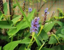 梭鱼草是雨久花科,梭鱼草属多年生挺水或湿生草本植物,株高可达150厘米,地茎叶丛生,圆筒形叶柄呈绿色,…