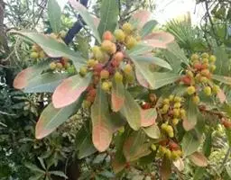 果序长约10-15厘米,俯垂,通常具5-7果实,序轴被短柔毛。果实球状、卵状或椭圆状,顶端尖,密被腺质短柔毛,长3.5-7.5厘米,径3-5厘米;果核长2.5-5厘米,表面具8条纵棱,其中两条较显著,各棱间具不规则皱曲及凹穴,顶端具尖头;内果皮壁内具多数不规则空隙,隔膜内亦具2空隙。花期5月,果期8-9月。