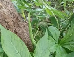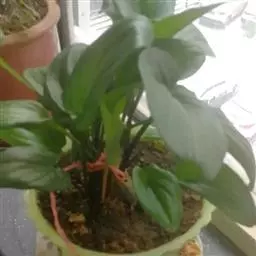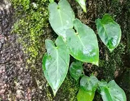 天南星科多年生常绿草本植物。茎节短;叶自基部生出,绿色,革质,全缘,长圆状心形或卵心形,叶柄细长。