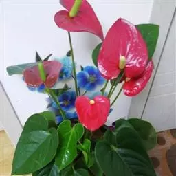 花烛花叶俱美,花期长、为优质的切花材料。用红色花烛为主材,配上小菊、霞草、艳山姜、变叶木瓶插,有着浓厚的江南乡惰。若以花烛为主花,篮插,配以文心兰、报岁兰、百合、天门冬,是一份精美无比的节日礼物。可以吸收人体排出的废气(氨气、丙酮),也可以吸收装修残留的各种有害气体(甲醛等),同时可以保持空气湿润,避免人体的鼻粘膜干燥。 花烛