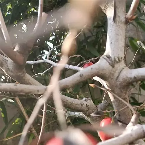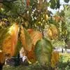 柿 落叶大乔木,通常高达10-14米以上,胸高直径达65厘米,高龄老树有高达27米的;树皮深灰色至灰黑色,或者黄灰褐色至褐色,沟纹较密,裂成长方块状;树冠球形或长圆球形,老树冠直径达10-13米,有达18米的。