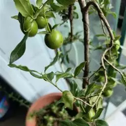 果形种种,有球形,扁球形,球形而略呈方形,卵形,等等,直径3.5-8.5厘米不等,基部通常有棱,嫩时绿色,后变黄色,橙黄色,果肉较脆硬,老熟时果肉变成柔软多汁,呈橙红色或大红色等,有种子数颗;种子褐色,椭圆状,长约2厘米,宽约1厘米,侧扁,在栽培品种中通常无种子或有少数种子;宿存萼在花后增大增厚,宽3-4厘米,4裂,方形或近圆形,近平扁,厚革质或干时近木质,外面有伏柔毛,后变无毛,里面密被棕色绢毛,裂片革质,宽1.5-2厘米,长1-1.5厘米,两面无毛,有光泽;果柄粗壮,长6-12毫米。