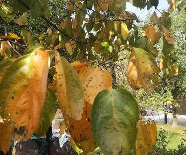 此病危害柿叶和柿蒂。最初在叶子正面发生黄褐色的小斑点,边缘颜色较浅,逐渐扩大成圆形褐色病斑。一般病斑直径约3毫米,最大可达7毫米,随着叶片变红,病斑周围出现绿色或黄色晕圈,严重时叶片迅速变红脱落,树势强健者病叶不变红就脱落。当危害叶脉时,使叶成畸形;柿蒂上发病较迟,病斑也较少;病株果实小、味淡、容易提早变软脱落。病源菌以菌丝在病叶或病蒂上越冬。第二年4-5月形成子囊壳,子囊孢子在6月中旬成熟,借风雨传播,8-9月开始发病,一年仅有一次入侵。在阴雨连绵的年份或潮湿的气候发病较重。