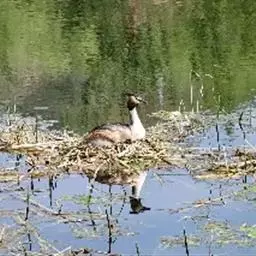 白腹麻鸭(图5) 2龄时性成熟。通繁殖期4-6月。对的结合较为固定。交配在水中或地上进行,交配前雌鸭颈部向前伸直,头低向地面,并发出‘嘎嘎’叫声,来回在雄鸭周围走动,雄鸭此时也伸长脖子走向雌鸭,随后衔住雌鸭肩羽,上到雌鸭背上进行交配。营巢于天然洞穴或其他动物废弃洞穴、墓穴以及山间和湖泊岛屿上的土洞和石穴中。巢由少量枯草和大量绒羽构成。窝卵数8-10枚。由雌鸟单独承担,雄鸟在巢附近警戒,遇危险时则高声鸣叫以示警,有时雄鸟还飞向入侵者作出攻击姿势进行恐吓。雌鸟离巢时用绒羽将卵盖住,然后才随雄鸟一起外出觅食。 白腹麻鸭(图6) 觅食结束后雄鸟又伴随雌鸟飞回巢中,然后才离开雌鸟栖息于巢附近警戒。孵化期27-30天,5月初即有雏鸟孵出。已孵出的雏鸟和亲鸟一起游泳在水塘和小溪中,见人后雏鸟立刻藏入岸边草丛。雏鸟早成性,孵出后即长满了绒羽,并会游泳和潜水。也有资料说雏鸟孵出后通常由亲鸟从巢区背负到水域。在水中游泳时雏鸟亦常爬到亲鸟背上玩耍,雏鸟在亲鸟带领下经过50天左右的雏鸟期生活后即具飞翔能力。