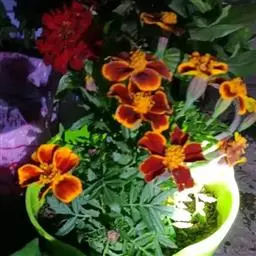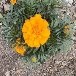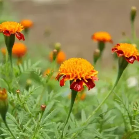 万寿菊是菊科万寿菊属一年生草本植物,别名孔雀菊、缎子花、臭菊花、西番菊、红黄草、小万寿菊、臭芙蓉、孔雀草。万寿菊茎近基部分枝。叶羽状分裂,长5-10厘米,宽4-8厘米,裂片长椭圆形或披针形,具锐齿,上部叶裂片齿端有长细芒,叶缘有少数腺体。头状花序单生,径5-8厘米,花序梗顶端棍棒状。总苞长1.8-2厘米,径1-1.5厘米,杯状,顶端具尖齿。舌状花黄或暗橙黄色,长2.9厘米,舌片倒卵形,长1.4厘米,基部成长爪,先端微弯缺。管状花花冠黄色,长约9毫米,冠檐5齿裂。瘦果线形,被微毛;冠毛有1-2长芒和2-3短而钝鳞片。花期7-9月。万寿菊中国各地均有栽培,在广东和云南南部、东南部已归化,国外原产墨西哥。万寿菊对土壤要求不严,但以肥沃疏松排水良好的土壤为好。耐移栽,种子发芽适温21-24℃,植株生长适合温度为20-29℃。喜温暖和阳光充足的环境,不