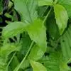叶对生,有时上部互生,常有腋生的不发育的叶芽。中部茎叶卵形或椭圆形或长圆形,长3-8厘米,宽2-5厘米;自中部叶向上向下及腋生小枝上的叶渐小或小,卵形或长圆形,有时植株全部叶小形,长仅1厘米,宽仅达0.6毫米。全部叶基部钝或宽楔形,基出三脉或不明显五出脉,顶端急尖,边缘圆锯齿,有长1-3厘米的叶柄,两面被白色稀疏的短柔毛且有黄色腺点,上面沿脉处及叶下面的毛稍多有时下面近无毛,上部叶的叶柄或腋生幼枝及腋生枝上的小叶的叶柄通常被白色稠密开展的长柔毛。