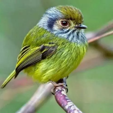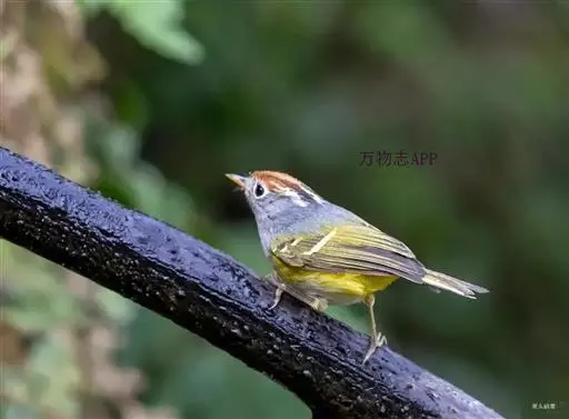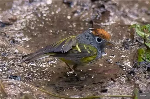 全长75-100毫米。前额、头顶至后枕棕栗色,侧冠纹前部较狭呈灰黑色,向后逐渐变粗呈黑色,枕侧杂白色斑纹;眼先灰白,眼圈白色;颊和耳羽灰,杂灰黑色细纹;上背和肩灰色,下背橄榄绿,腰和尾上覆羽鲜黄;翅上覆羽、飞羽和尾羽黑褐,外缘橄榄绿色,大中覆羽具淡黄色端斑,形成两道翼斑。颏、喉和胸灰色,中央较淡呈灰白色,延伸至上腹部中央,上腹部两侧和下腹部、胁部、翅下覆羽、腋羽及尾下覆羽亮黄绿色;最外侧两对尾羽内翈纯白色。
