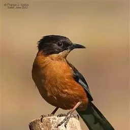 虹膜暗褐;上嘴黑褐,下嘴黄褐色;跗蹠、趾、爪淡黄褐色。