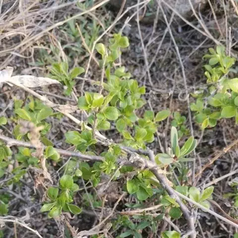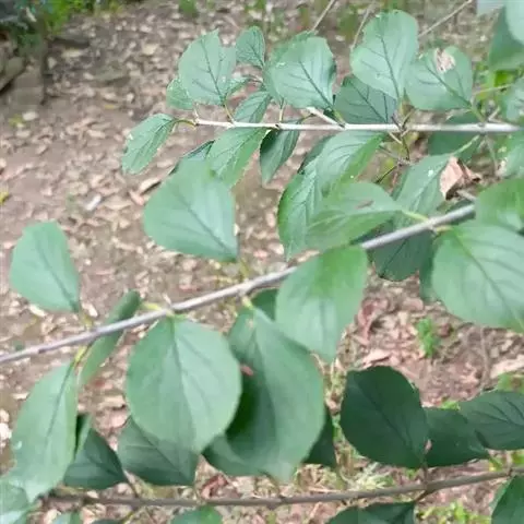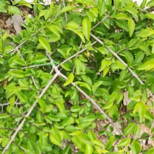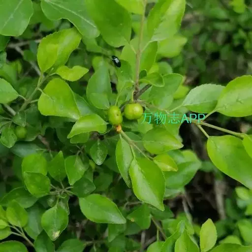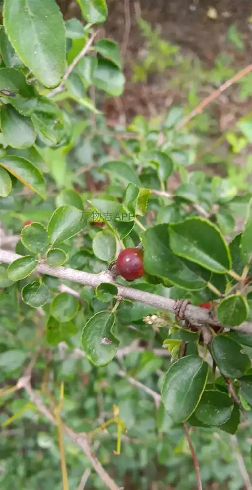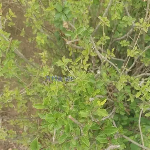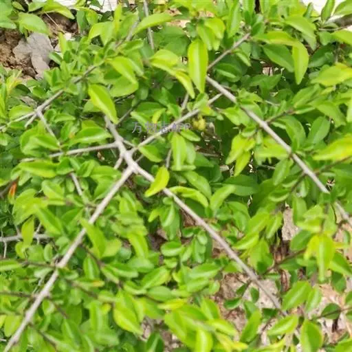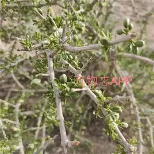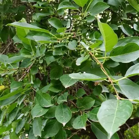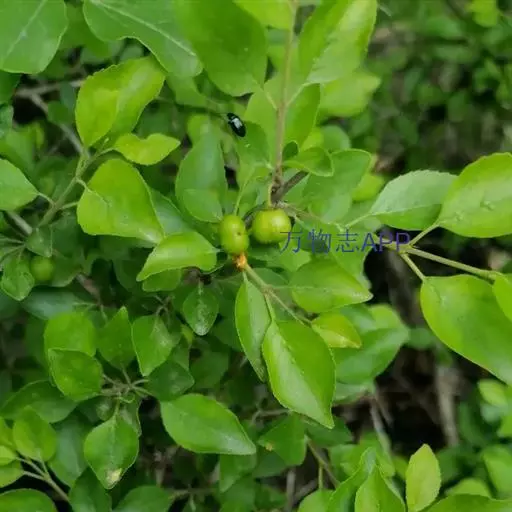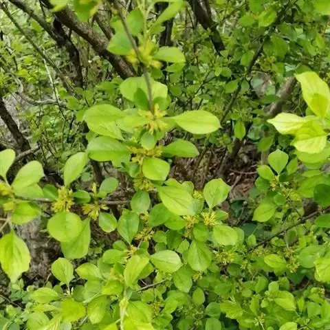 小叶鼠李,又名麻绿、大绿、驴子刺、叫驴子刺。灌木,高1.5-2m;小枝对生或近对生,紫褐色,初时被短柔毛,后变无毛,平滑,稍有光泽,枝端及分叉处有针刺;芽卵形,长达2mm,鳞片数个,黄褐色。叶纸质,对生或近对生,稀兼互生,或在短枝上簇生,菱状倒卵形或菱状椭圆形,稀倒卵状圆形或近圆形,长1.2-4cm,宽0.8-2(3)cm,顶端钝尖或近圆形,稀突尖,基部楔形或近圆形,边缘具圆齿状细锯齿,上面深绿色,无毛或被疏短柔毛,下面浅绿色,干时灰白色,无毛或脉腋窝孔内有疏微毛,侧脉每边2-4条,两面凸起,网脉不明显;叶柄长4-15mm,上面沟内有细柔毛;托叶钻状,有微毛。花单性,雌雄异株,黄绿色,4基数,有花瓣,通常数个簇生于短枝上;花梗长4-6mm,无毛;雌花花柱2半裂。核果倒卵状球形,直径4-5mm,成熟时黑色,具2分核,基部有宿存的萼筒;种子矩圆状倒卵圆形,褐色,背侧有长为种子4/5的纵沟。花期4-5月,果期6-9月。