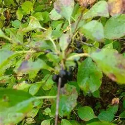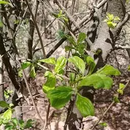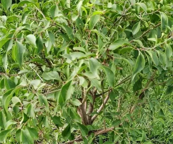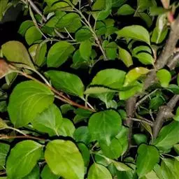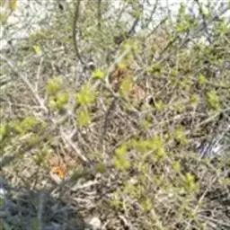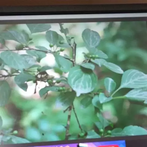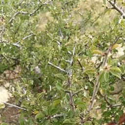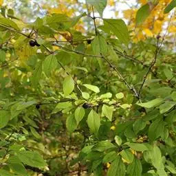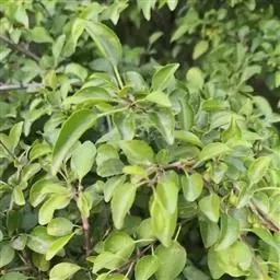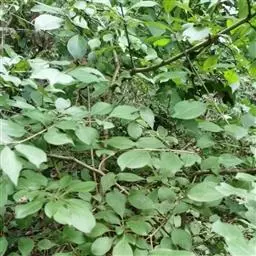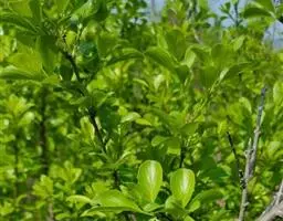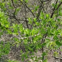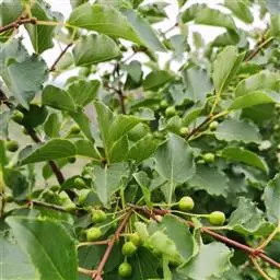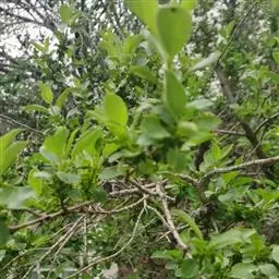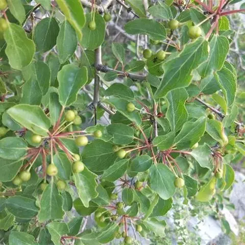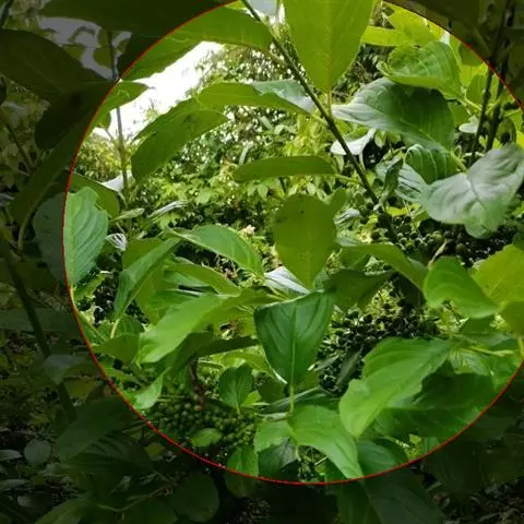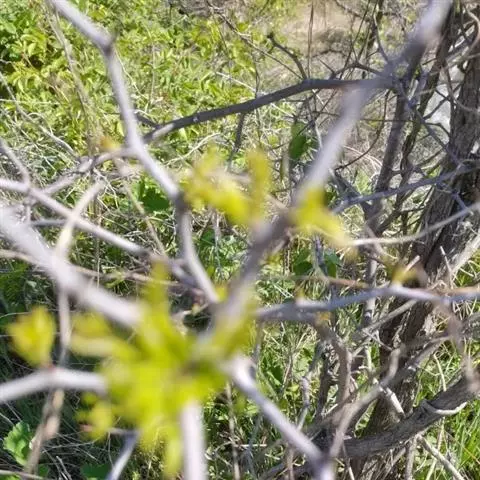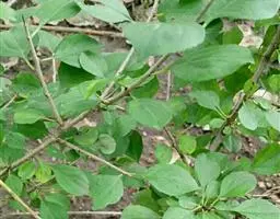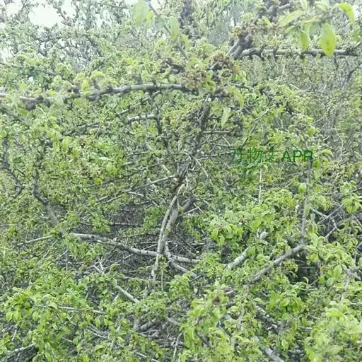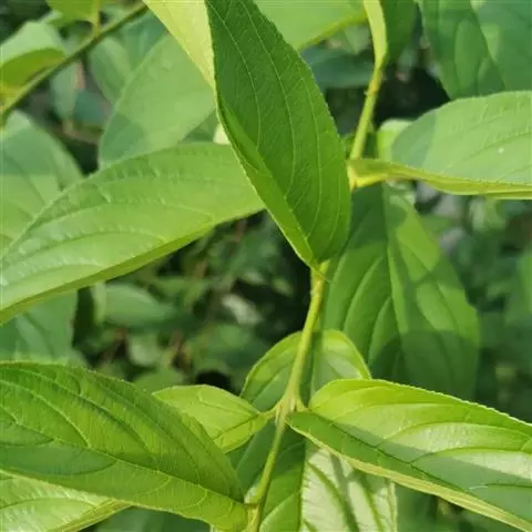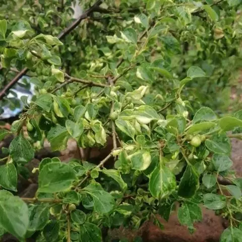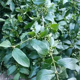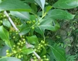 小叶鼠李,又名麻绿、大绿、驴子刺、叫驴子刺。灌木,高1.5-2m;小枝对生或近对生,紫褐色,初时被短柔毛,后变无毛,平滑,稍有光泽,枝端及分叉处有针刺;芽卵形,长达2mm,鳞片数个,黄褐色。叶纸质,对生或近对生,稀兼互生,或在短枝上簇生,菱状倒卵形或菱状椭圆形,稀倒卵状圆形或近圆形,长1.2-4cm,宽0.8-2(3)cm,顶端钝尖或近圆形,稀突尖,基部楔形或近圆形,边缘具圆齿状细锯齿,上面深绿色,无毛或被疏短柔毛,下面浅绿色,干时灰白色,无毛或脉腋窝孔内有疏微毛,侧脉每边2-4条,两面凸起,网脉不明显;叶柄长4-15mm,上面沟内有细柔毛;托叶钻状,有微毛。花单性,雌雄异株,黄绿色,4基数,有花瓣,通常数个簇生于短枝上;花梗长4-6mm,无毛;雌花花柱2半裂。核果倒卵状球形,直径4-5mm,成熟时黑色,具2分核,基部有宿存的萼筒;种子矩圆状倒卵圆形,褐色,背侧有长为种子4/5的纵沟。花期4-5月,果期6-9月。