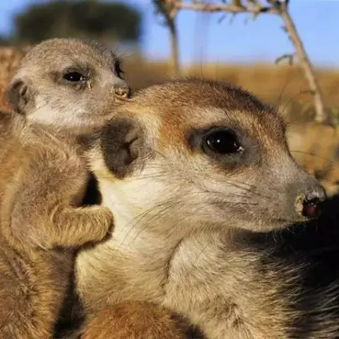 狐獴(学名:Suricata suricatta),头尾长42-60厘米,是一种小型的哺乳动物。体形粗笨。四肢短,后足仅具4趾,趾间有蹼;尾长而圆,约为体长的2/3,上被小鳞片及稀疏的毛。背部毛色黑褐,杂以黄色毛尖,绒毛为深咖啡色;尾两色,上面棕黑色,尾基部和下部为淡黄色。