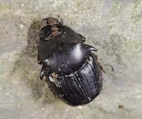 雄性蜣螂因头部长有一枚角突,药材商品称之为“独角蜣螂”,习惯认为独角蜣螂质量为优。