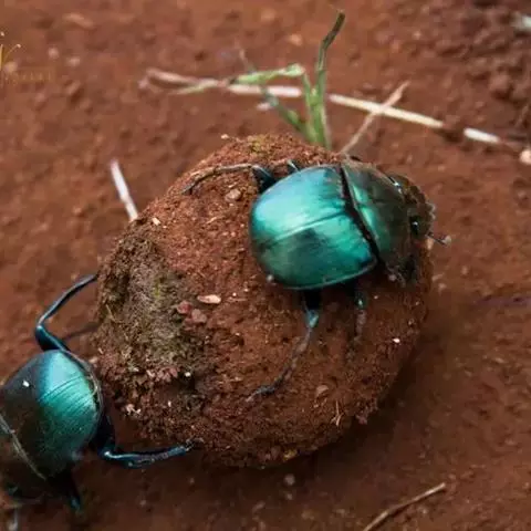 很多食草动物,比如马、牛、羊或羚羊排泄的粪便中,往往还残存有大量的营养物质,有些甲虫就是靠这些粪便生存的。它们不仅自己以此为生,还将卵产在粪便中,确保下一代出生就吃喝不愁。这些格外钟爱新鲜粪便的甲虫叫蜣螂。