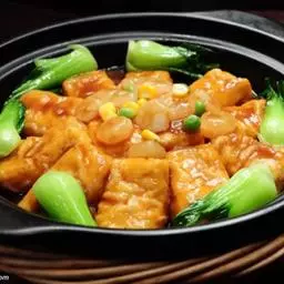 豆腐煲是一道美味可口的名肴,属于粤菜系。主料:北豆腐、蟹味菇、瑶柱、鲜茶树菇