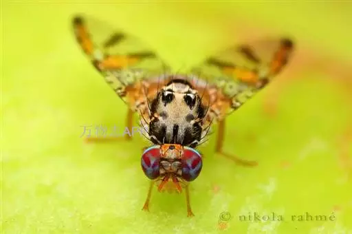 地中海实蝇,一种毁灭性的水果害虫,是实蝇科昆虫的一种。原产非洲热带地区,后分布到世界许多地区 现已分布在80多个国家和地区,此种害虫有250多种寄主,主要危害柑桔、苹果、梨等水果和茄科蔬菜。为重要检疫性害虫。成虫体长 4~5 毫米,翅长4.5 毫米。体和翅上有特殊颜色。额黄色,头顶黄色略具光泽。此虫极具有破坏水果的危害性。