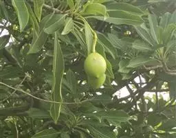 两面被微毛;萼片卵圆形,长约1.5毫米,两面被微毛;花冠粉红色,花冠筒细长,长达3.8厘米,喉部膨大,外面无毛,内面喉部被柔毛,花冠裂片长圆形;雄蕊着生在花冠喉部,花丝短;花盘舌状,比子房短或等长,与心皮互生;子房由2枚离生心皮所组成,被绒毛,花柱细长,柱头棒状,每心皮有胚珠2颗。核果通常单个(另一个不发育);种子通常1颗(另一个不发育),坛状,长1.3-2.5厘米,斜截形,被短柔毛,种皮薄,绿紫色。花期9月,果期秋冬季。