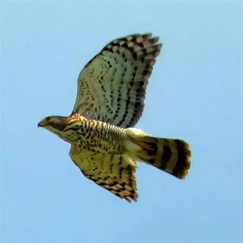 赤腹鹰是小型猛禽,翅膀尖而长,因外形像鸽子,所以也叫鸽子鹰。体长27-36厘米,体重108-132克。…