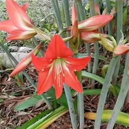 多年生草本。根为肉质,灰白色。茎基部宿存的叶基呈鳞茎状。基生叶约有十几枚,质厚,深绿色,具光泽,带状,长25-40厘米,宽3-3.5厘米,边缘粗糙。花茎由叶丛中抽出,稍短于叶;伞形花序顶生,有小花数10-30朵左右,每小花6个花瓣,6个雄蕊1个雌蕊。花色有橙黄、橙红、深红等色。多花,开花时花稍下垂;花被狭漏斗形,桔红色,内轮花被裂片色较浅;雄蕊与花被近等长;花柱长,稍伸出花被外。 花期12月至来年5月,花期长达30-50 天。杂交授粉,浆果、果实未成熟时绿色,种子成熟需要8-9个月。