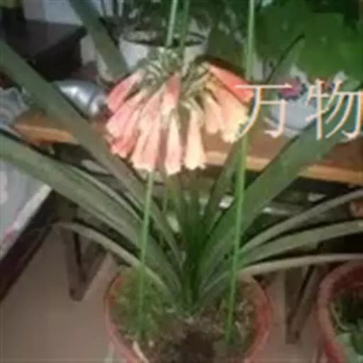 垂笑君子兰高雅肃穆,叶片狭长,花茎稍短叶于叶,花橙黄色,开放时下垂,呈桶状,是春节期间布置会场,点缀宾馆、美化家庭环境的盆栽花卉。