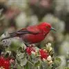 藏朱雀:全长约17-18厘米。雄鸟头部深红色具光辉,喉部暗红色具白色点斑;背部灰白色,各羽具玫瑰红…