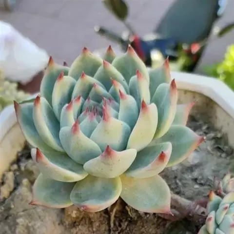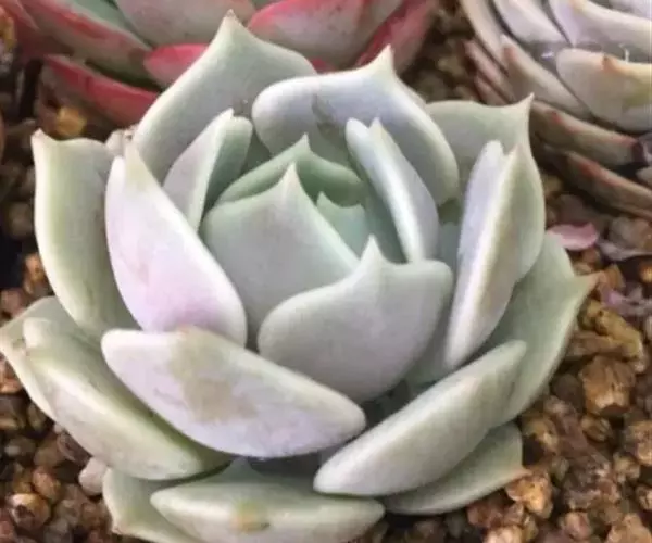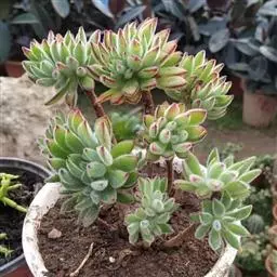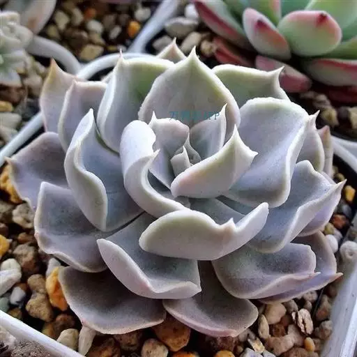 大和锦是景天科拟石莲花属的多肉植物。肉质叶排成紧密的莲座状,广卵形至散三角卵形,背面突起呈龙骨状,…