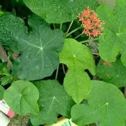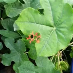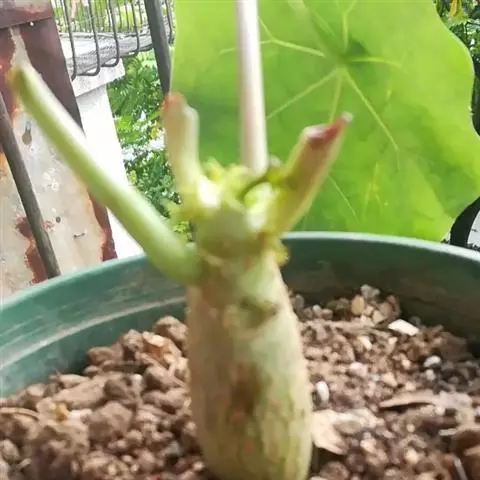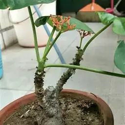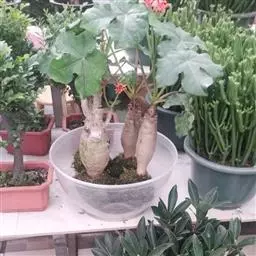 瓶干树又名佛肚树,学名是Jatropha podagrica Hook.,瓶干树的原生地是澳洲的昆士兰及南威尔斯的干燥地带,胖胖的体型被认为是对干旱气候的适应。