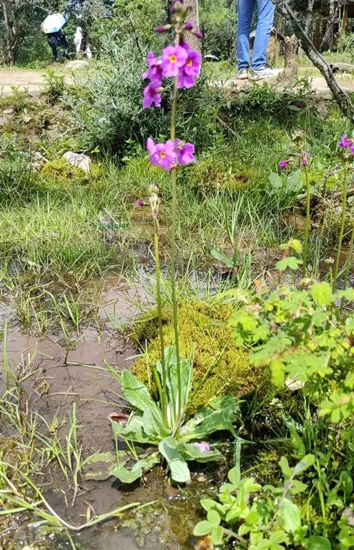 海仙报春(学名:Primula helodoxa Balf. f.):报春花科,报春花属多年生草本,多数粗长的支根,叶片阔倒披针形至倒卵状长圆形,先端钝或圆形,边缘具三角形小牙齿,两面秃净或下面被稀薄黄粉;花葶粗壮,开花时高可达90厘米,果时高可达120厘米,具伞形花,节上被黄粉;苞片线形或线状披针形,花萼钟状,裂片三角形,花冠金黄色,有芳香,雄蕊着生处距冠筒基部2毫米,蒴果球形,稍短于花萼。3-5月开花。