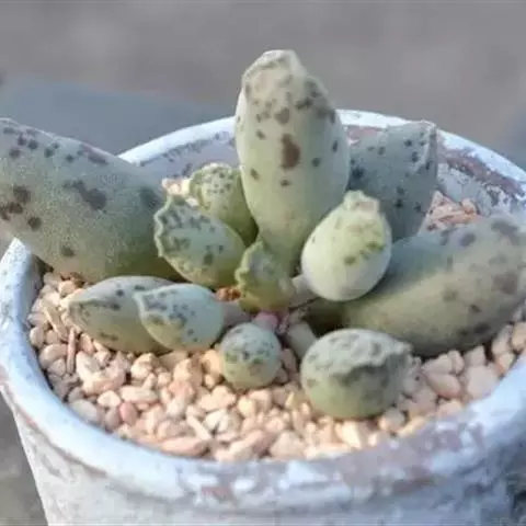 褐斑伽蓝是景天科伽蓝菜属的多年生多肉类植物,茎直立,多分枝,叶生于枝上,肉质叶片匙形,…